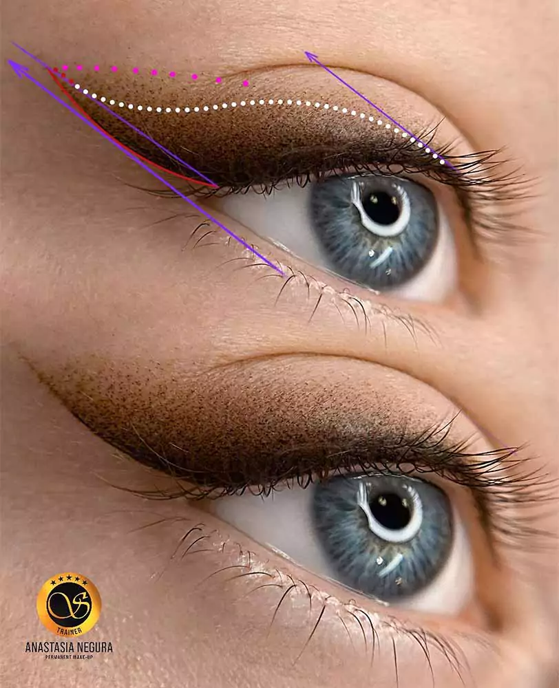 یا همان سایه چشم این تکنیک هم با بن مژه و هم با خط چشم قابل اجراست . هردو فرم چشمها را زیباتر نشان می دهد این تکنیک علاوه بر رنگ مشکی و قهوه ای ،با رنگهای مختلف بسته به سلیقه و رنگ چشم مراجعه کننده قابل انجام است